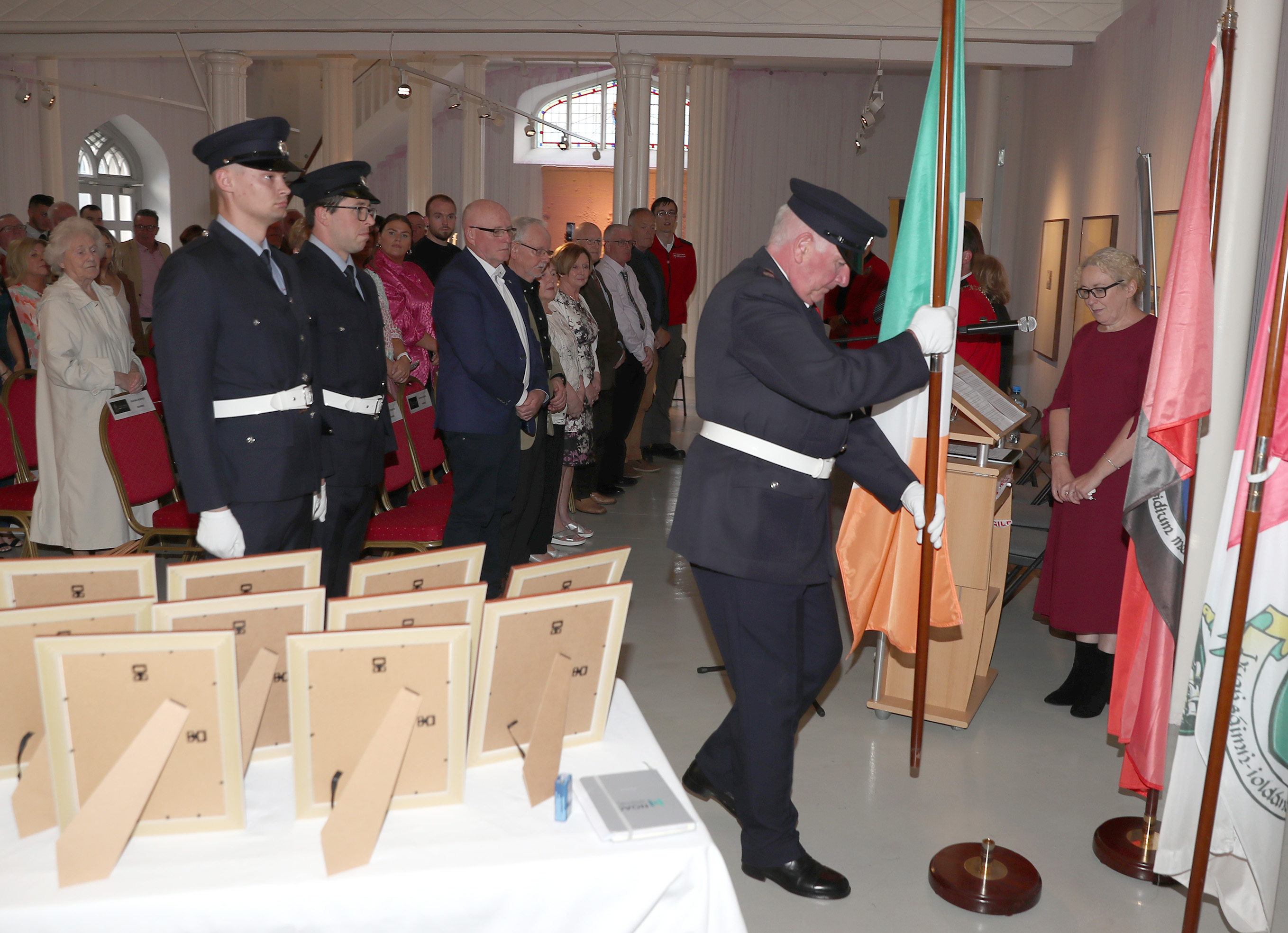 Attendees were presented with certificates of their awards by Deputy Mayor Kevin Callan, following which the flags were brought off parade and Niall Clarke firefighter with Louth County Council played the National Anthem on bagpipes.