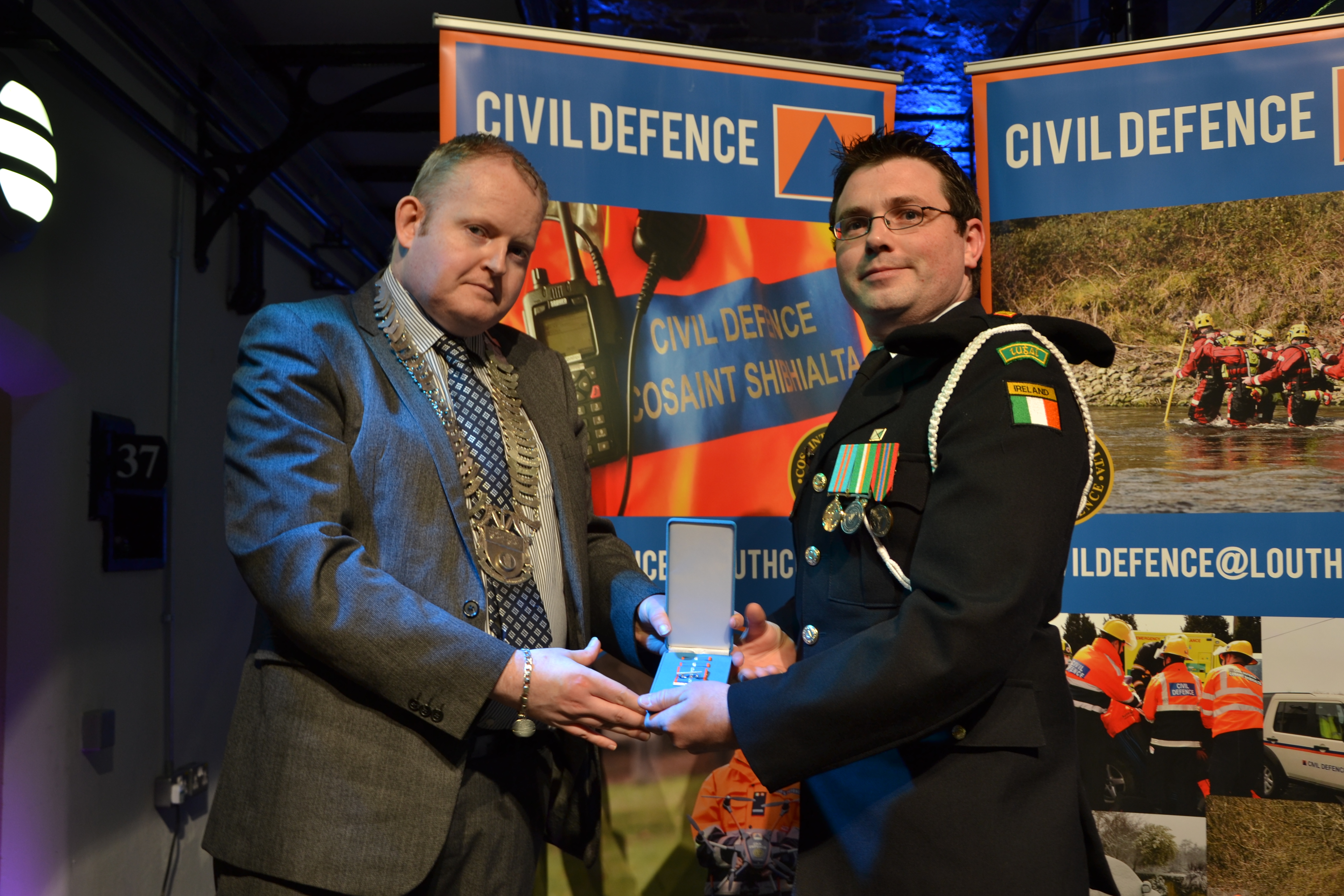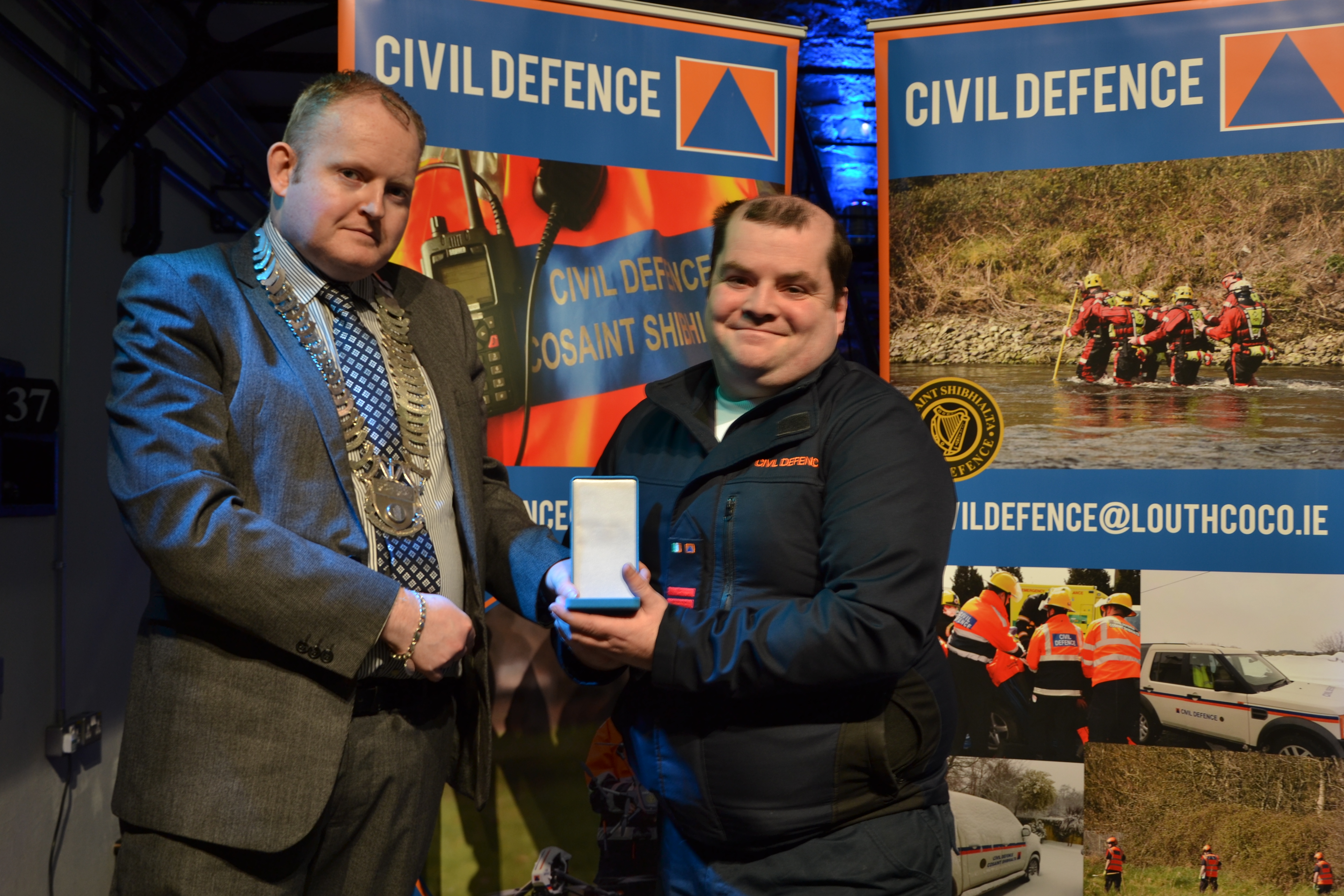A presentation ceremony was held in the Oriel Centre, Dundalk on Thursday 26th January 2023 where Louth County Council Cathaoirleach Cllr. Conor Keelan presented special Covid- 19 medals to Louth Civil Defence members.