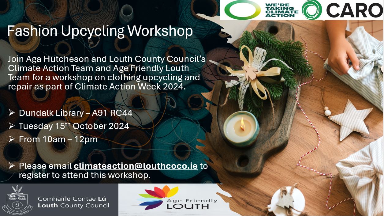 Fashion upcycling, energy awareness initiatives and Halloween themed events kick off Louth Climate Action Week, 14th to 20th October 2024.