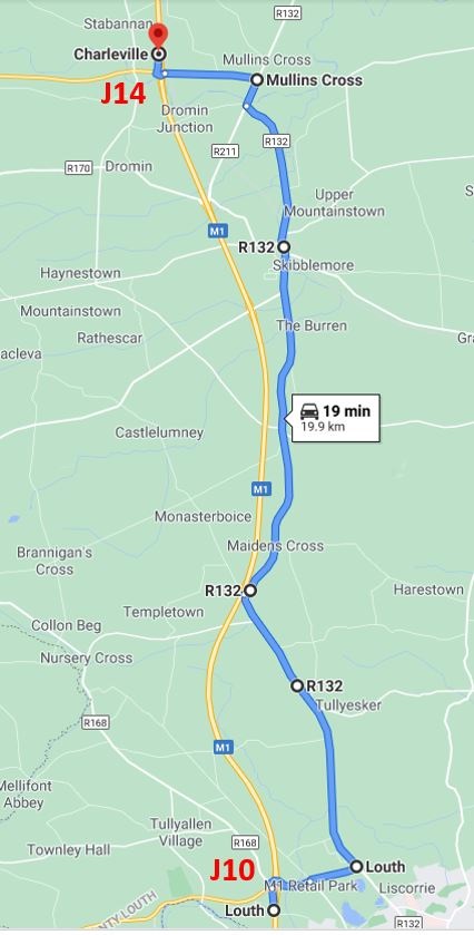 Northbound traffic will be diverted off the M1 at Junction 10 and onto the N51 / R132 through Monasterboice & Dunleer before re-joining the M1 at Junction 14.