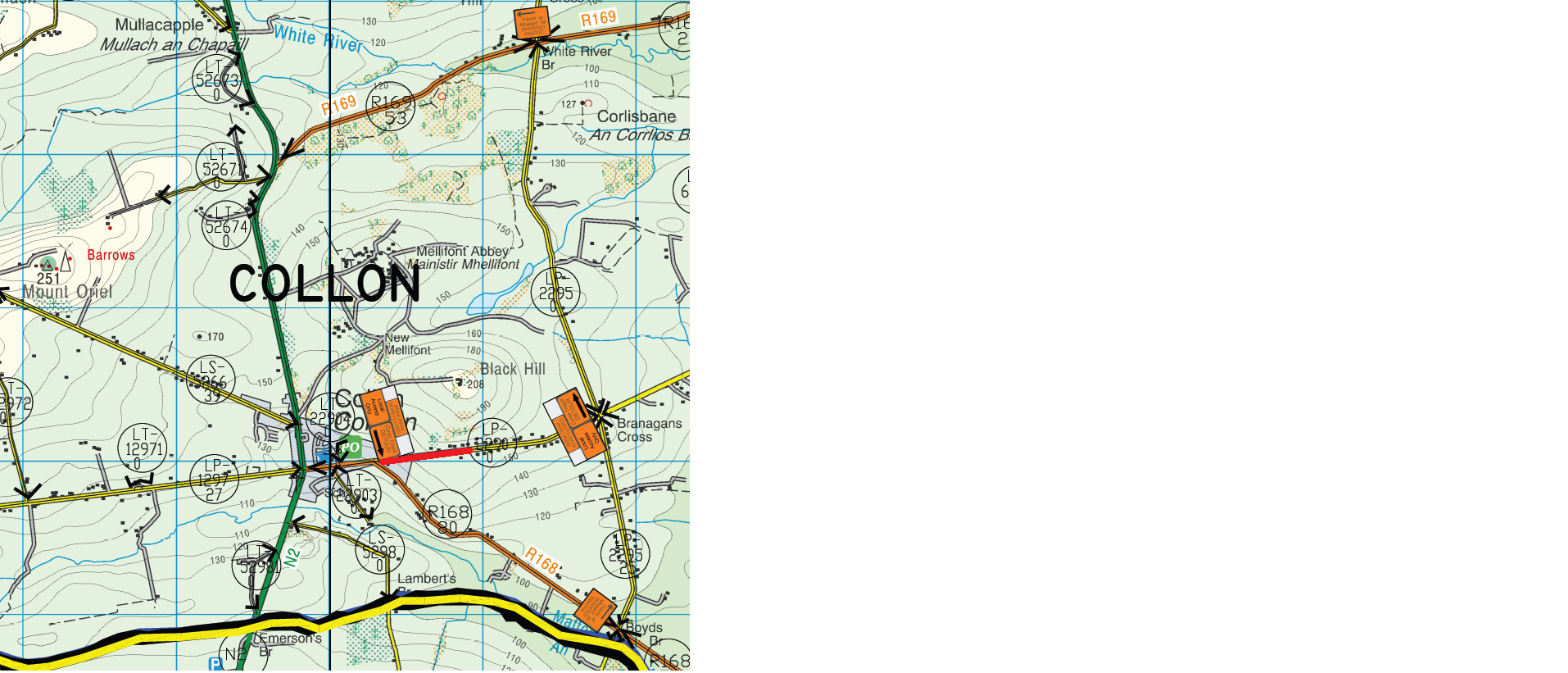 • From LP -2290 Branigans Cross to the junction of the R169 with the LP-2295 at White river cross.