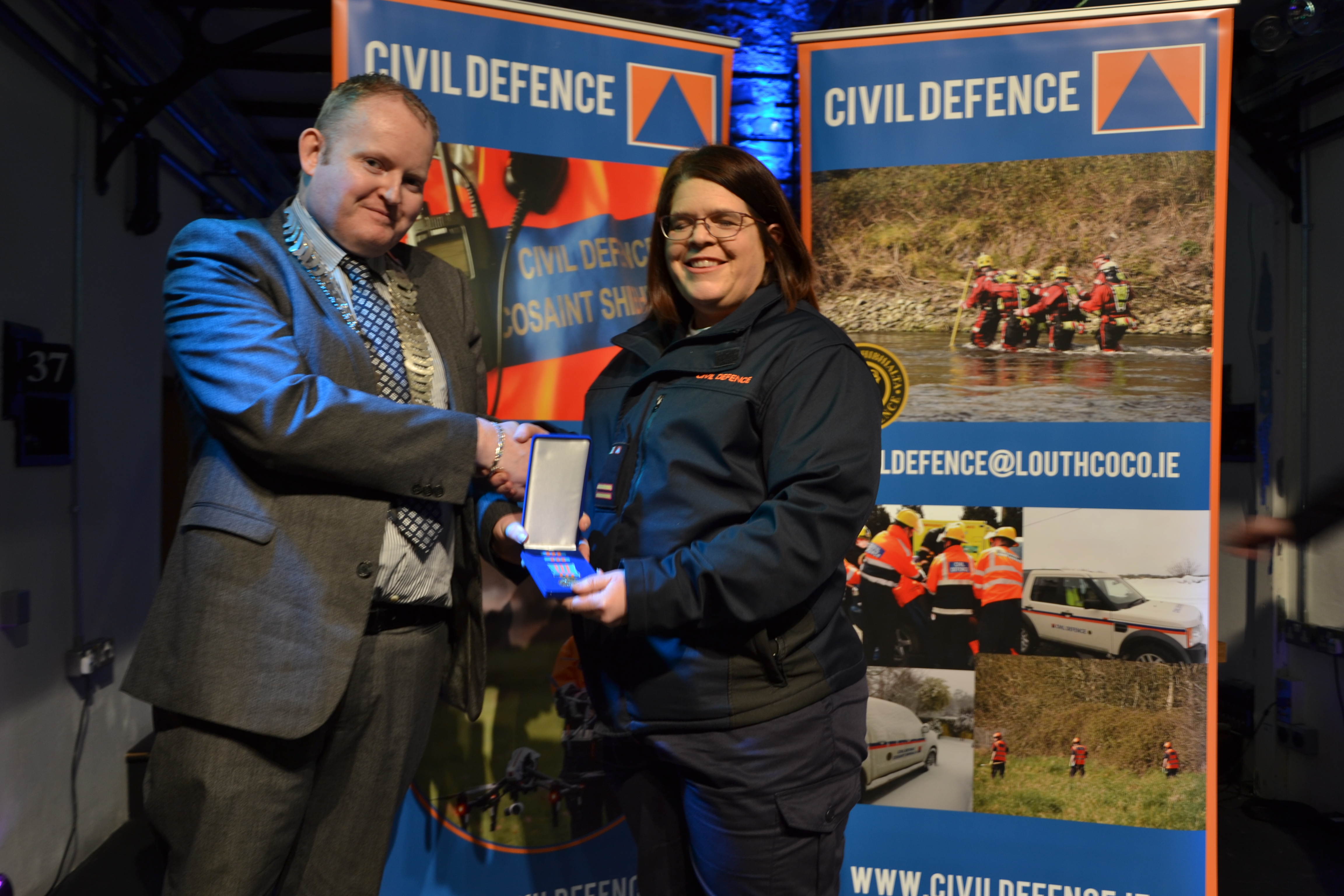 A presentation ceremony was held in the Oriel Centre, Dundalk on Thursday 26th January 2023 where Louth County Council Cathaoirleach Cllr. Conor Keelan presented special Covid- 19 medals to Louth Civil Defence members.