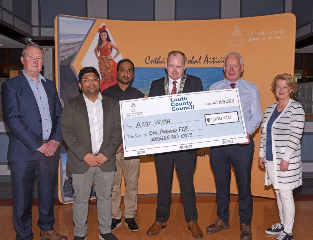 On 12th May, Cathaoirleach of Louth County Council, Conor Keelan, presented the award to Ajay Verma at a special ceremony held at County Hall, Dundalk. The event was attended by officials including Joe Mc Guinness, Director of Service at Louth County Council, SEO Finbar Gethins, Louth County’s Council Community Support Team, and DkIT staff, Professor Fergal Mc Caffery, Head of the School of Informatics and Creative Arts at DKIT, as well as Dr. Abhishek Kaushik and Alice Hoey from DKIT.