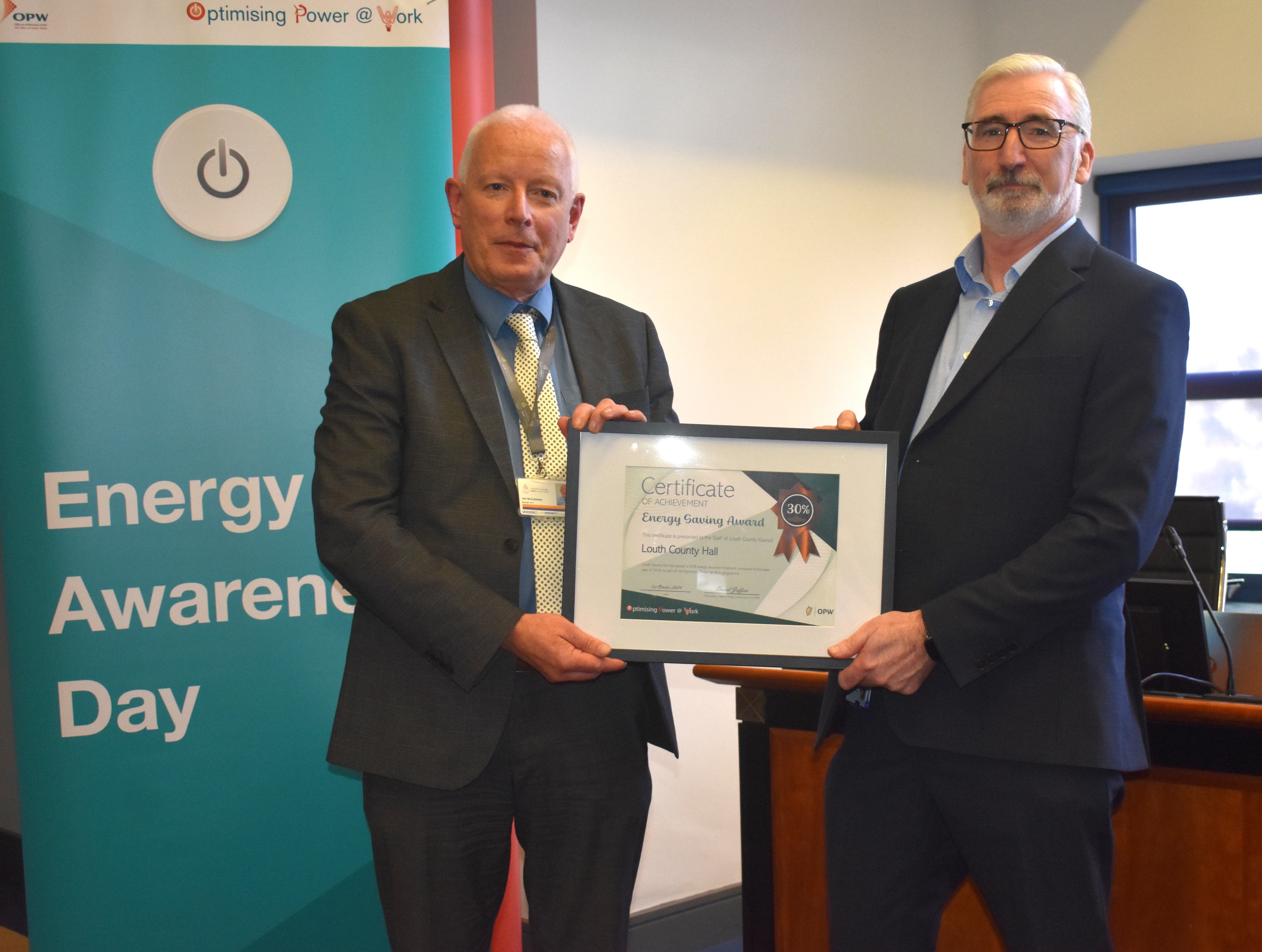 Louth County Council have been presented with an OPW ‘Energy Progress Award’ in recognition of a 30% energy reduction at County Hall Building, achieved as part of the Optimising Power@Work programme.