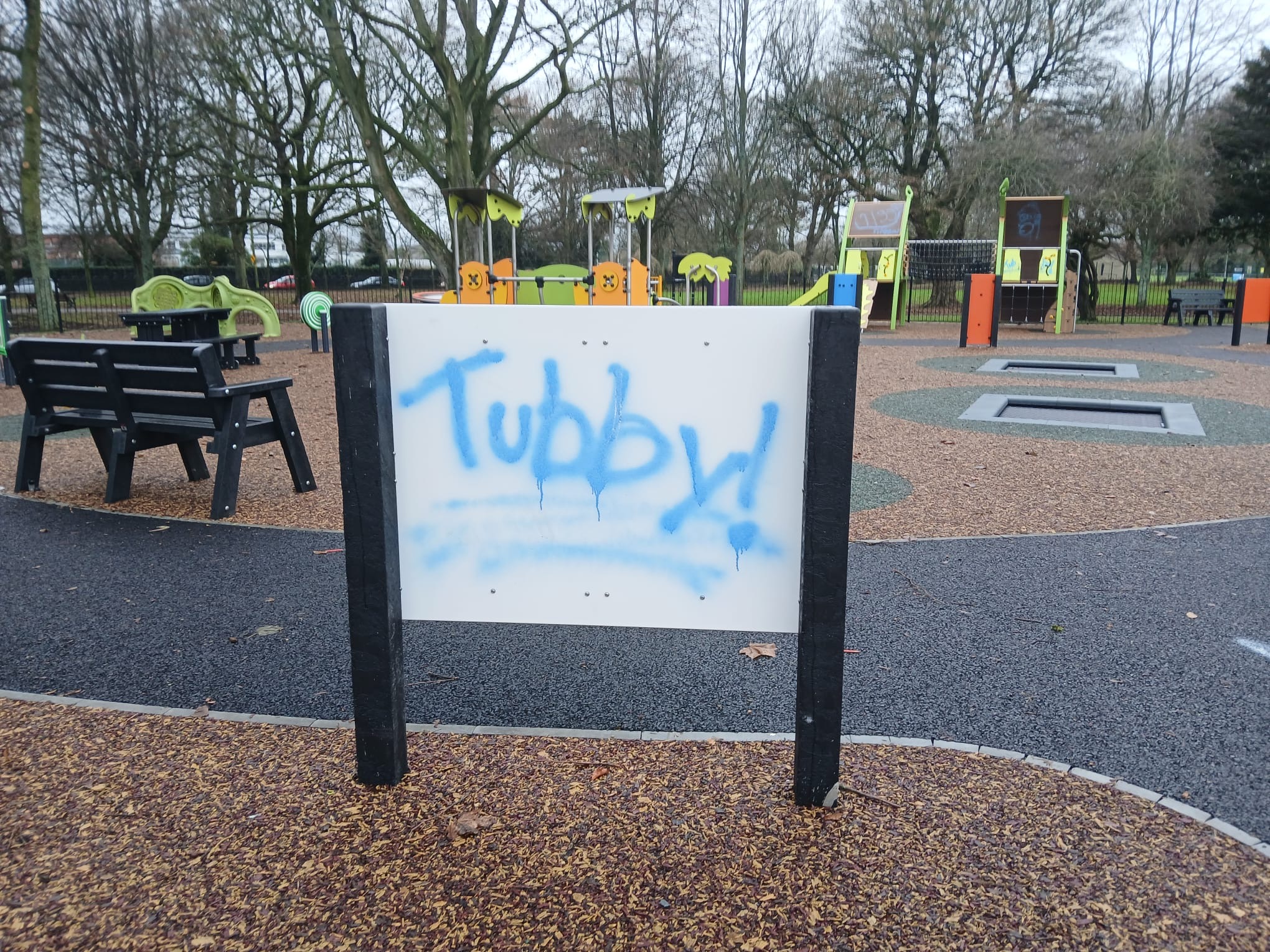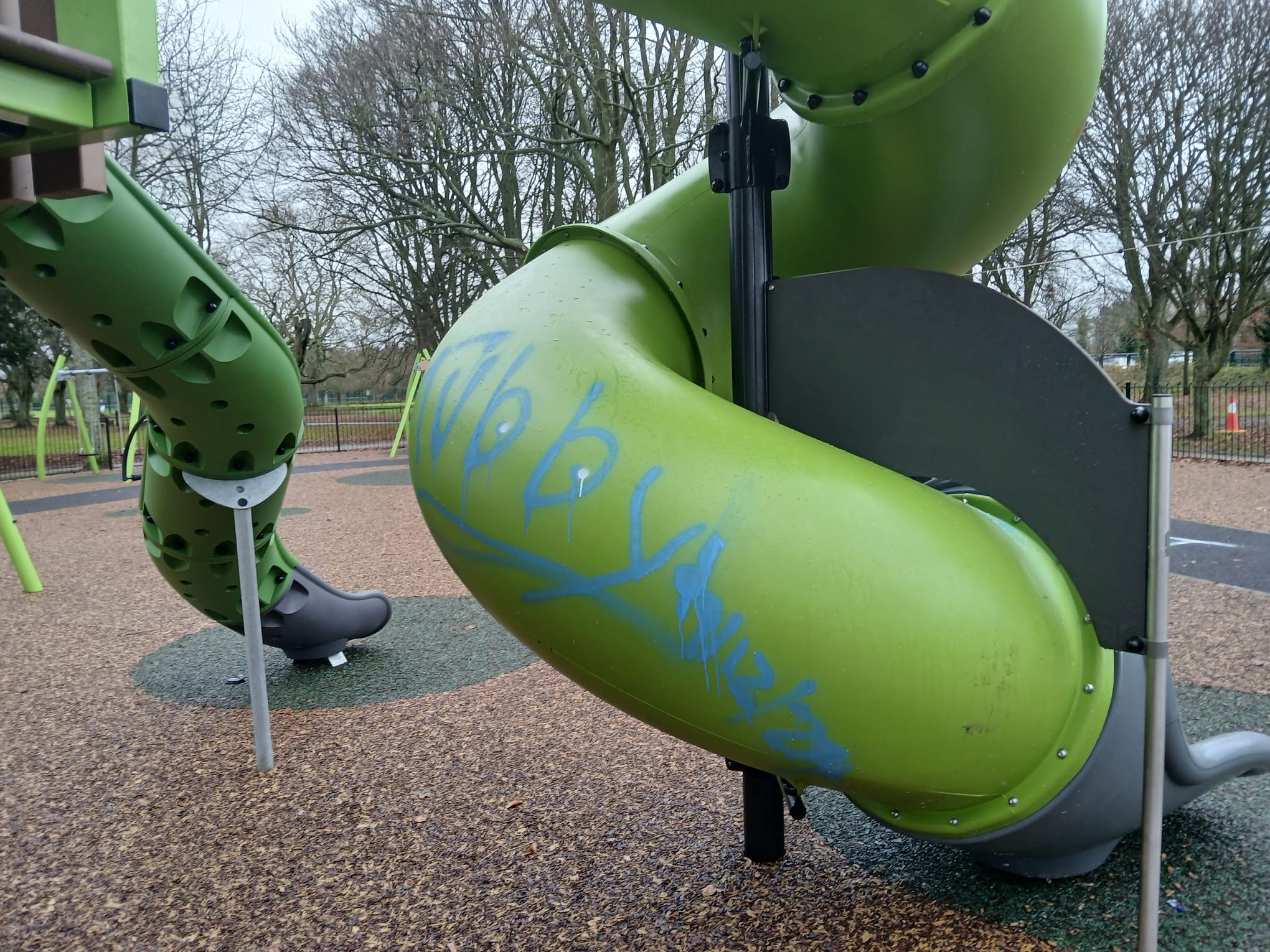 Over 80% of the new play equipment was defaced by graffiti, which was also discovered on macadam surface and the soft play surface areas.